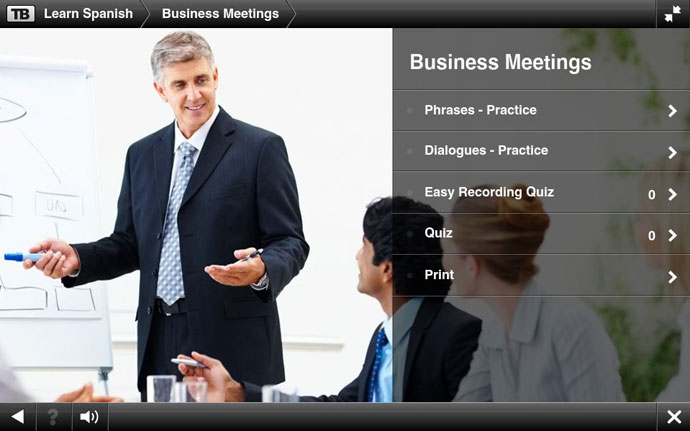 Each topic contains phrases and dialog practice and two quizzes.
