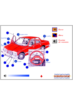 • Uno de los 20 juegos. Escucha la descripción y escoge la parte correcta del coche.