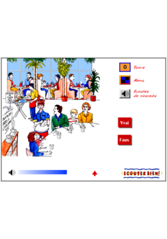 Ecoutez! tiene 20 actividades diferentes para ayudarte a entender Francés y aumentar tu nivel de comprensión auditiva, así como tu vocabulario. El programa simula diversas situaciones en las que puedes encontrarte durante un viaje, de esta forma siempre sabrás qué decir en un aeropuerto, en un banco o incluso en una fiesta.